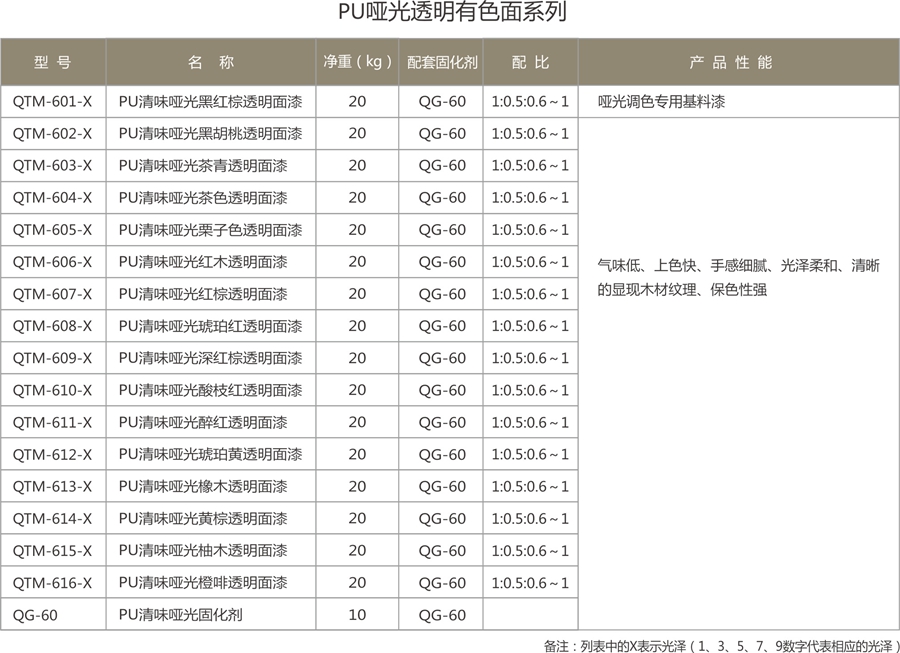 PU類有色透明面漆系列