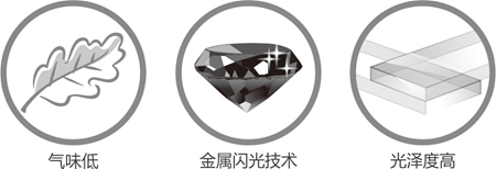 ①選擇不同的實色底,與不同色的閃光漆配套,深色閃光漆一般使用在黑底、咖啡底等底上,有沉穩、莊重之效果,淺色閃光漆一般使用在白、灰底上,顯得鮮明嬌艷。